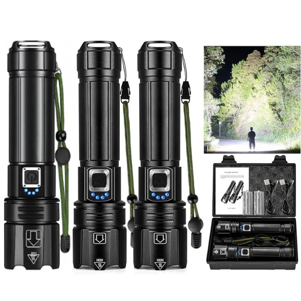 La LumenX Pro™ es la linterna táctica de alta potencia que transforma la noche en día. Con una construcción resistente y un resplandor cegador de 20.000 lúmenes, cabe fácilmente en la mochila, en el kit de emergencia o en la guantera del carro.